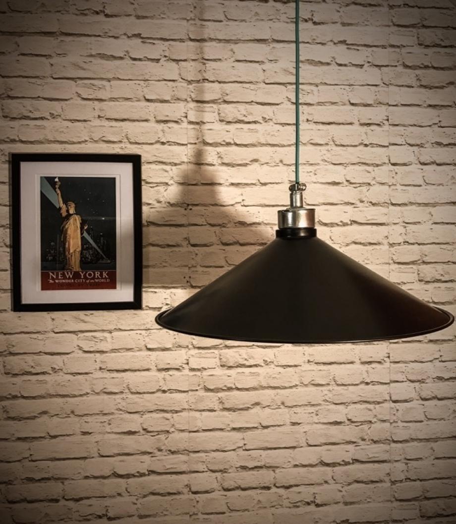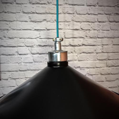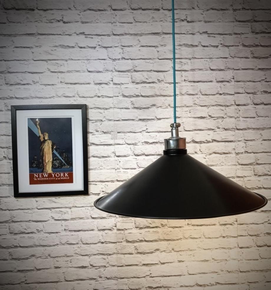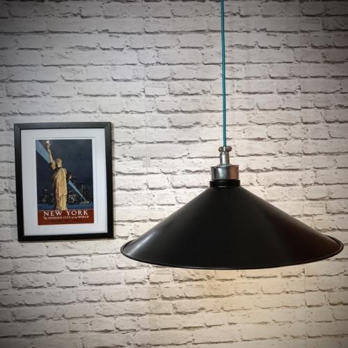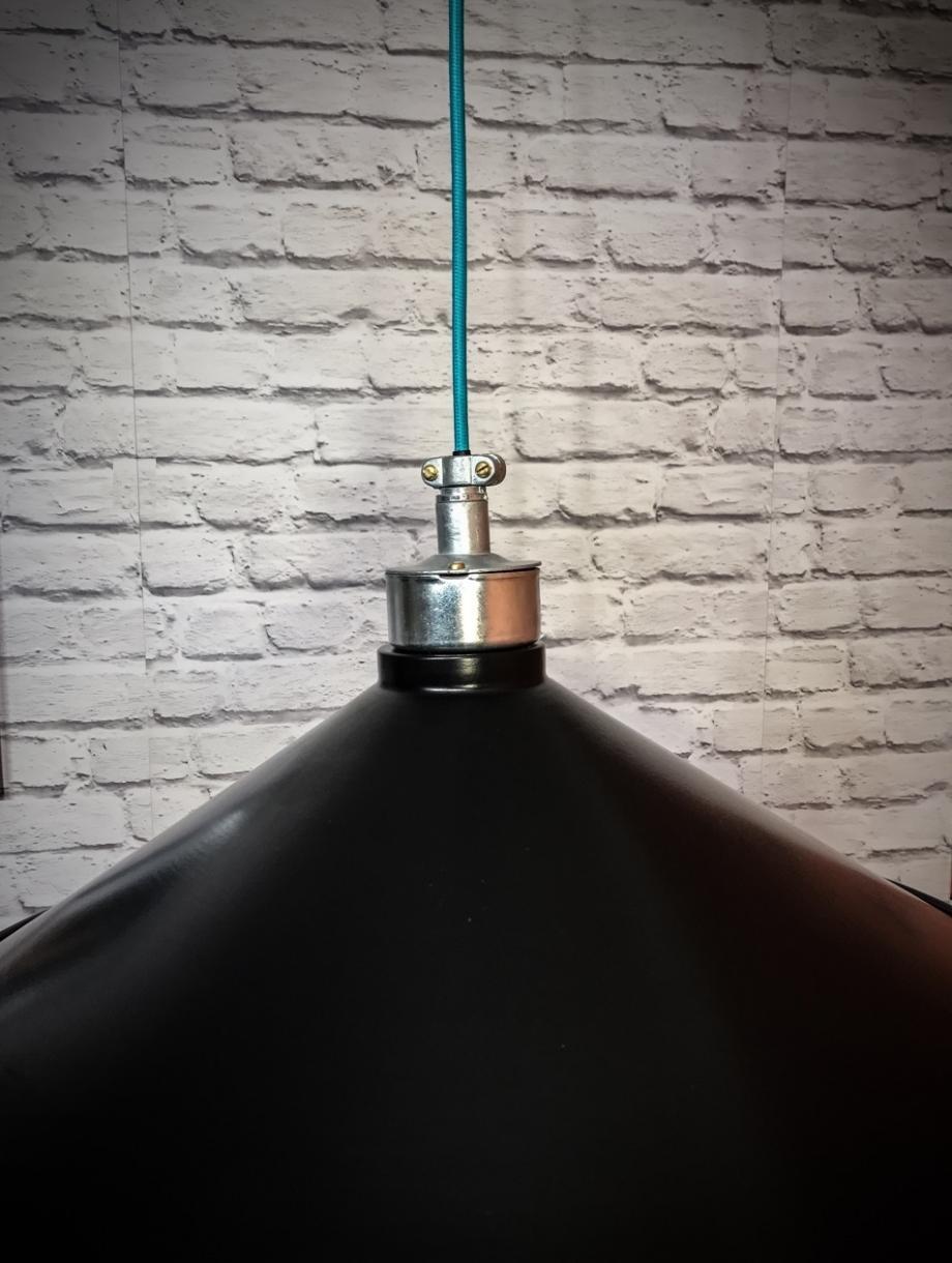 All the components and parts for this light are British made. The shade itself was made by a family run metal fabricators in the North. It was then powder coated and wired by hand in our Bristol workshop. The design of this pendant would compliment any urban or industrial room set. It would look great in a retro or modern kitchen or as a lovely statement light over a large table. I have used galvanised wiring accessories to make up the fitting including a metal cord grip and brass lamp holder. The concept I have followed whilst making this range is one of quality and reliability. Back to the old British roots. This is not a mass produced light and the quality is second to none. Even the metal used to make the 500mm large shade is 1.5mm steel not your average 1mm thin metal used on many of the mass produced fittings. It is a gorgeous pendant and I always get great feedback from my clients.