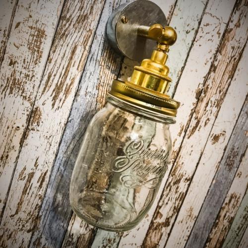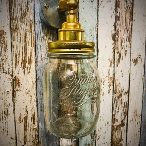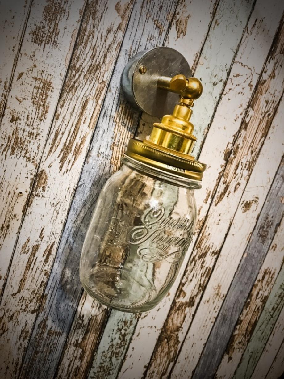 A quirky and industrial inspired handmade Jam Jar conduit box wall light. Made using an Italian glass jam jar we have created a gorgeous rtero inspired wall light. Using a brass E27 holder, brass extension and knuckle joint the light is then attached to a galvanised conduit box.