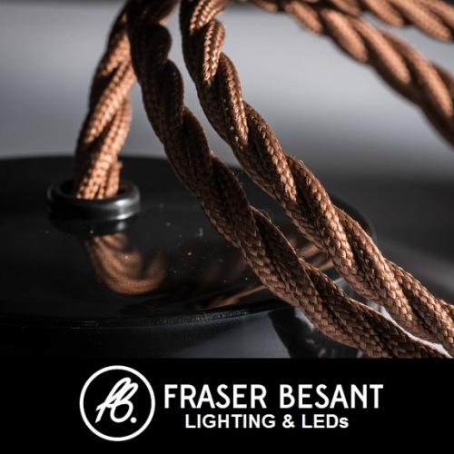 Rustic brown fabric twisted covered 3 core lighting cable. 3 x 0.5mm cores. Live neutral and earth. This cable can be used as a 2 core should and earth not be needed on the fitting. It is ideal for making up pendant lights or rewiring table and bedside lamps.