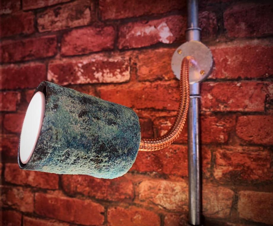 Hand made conduit box verdigris adjustable wall light