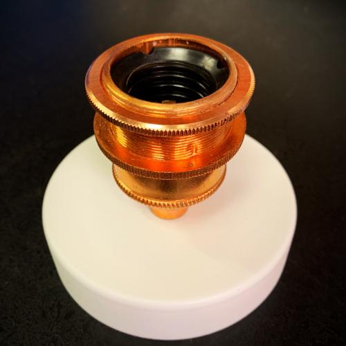 A handmade Pure matte white and copper E27 threaded batton holder. Ideal as a wall light or ceiling light. Two lock rings included so you could fit a lampshade, ideal for use with our hand made velvet lampshades if you want to fit them flush to the ceiling.