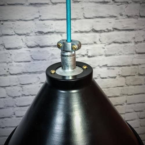The fitting pictured has been wired with our aqua round fabric cable, we are happy to fit any colour cable you like so please contact us to discuss customizing this light in any way. The fitting will be supplied with 1500mm of cable between the ceiling rose and the top of the shade. Again longer lengths can be fitted, please call us to discuss. These pendants are made to order so please allow 5 days for our workshop to make one up and test it ahead of delivery.