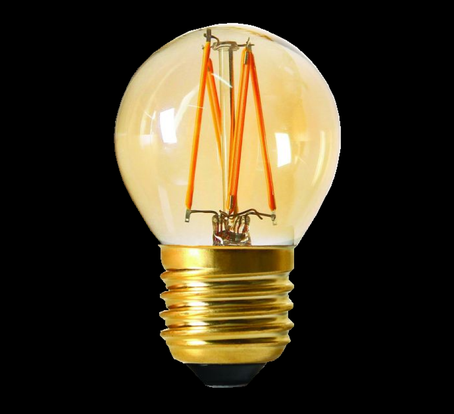 A gorgeous 2200k amber warm white filament LED gold ball. Available in E27 cap. 4 watt consumption producing 260lm. Fully dimmable with a compatible LED dimmer module, we always recommend the Varlight V-pro dimmers to get the best range. 3 year warranty with a projected life of 10 years if used 5 hours per day, so normal domestic usuage. 45mm wide and 75mm tall. This LED is ideal for an outside festoon lighting kit.