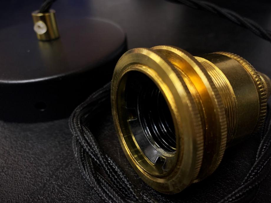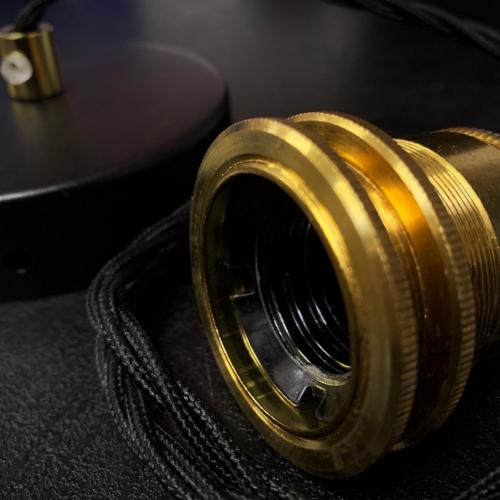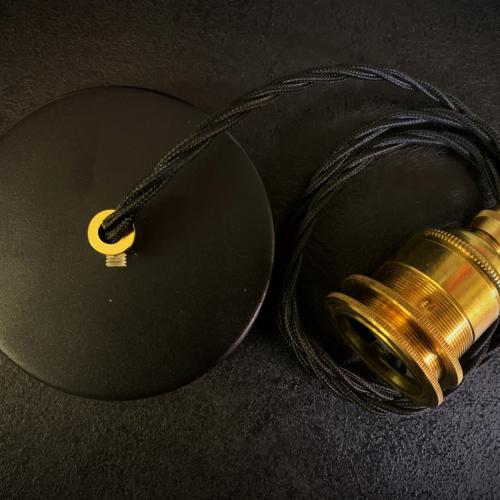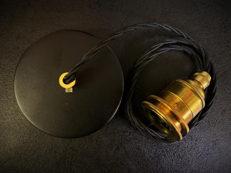 A pre wired 1 metre pendant set. Supplied with black twisted fabric cable, a gold E27 threaded lampholder and a matte black ceiling rose. The lampholder supplied comes with two matching shade lock rings suitable for hanging a lampshade. The shade carrier hole should be 40mm wide to fit over this lampholder and tighten up. It is ideal for suspending my handmade velvet fabric lampshades. It comes fully wired and tested and ready to fit. It is also supplied with Wago branded snap fit connectors for an easy instalation. These simple gold pendants look amazing with a super decorative LED lamp. The lamp becomes the feature. I offer a great range of decorative designer lamps including my new 200mm giant over sized LED globe. These are dimmable and offer an amber warm white light, ideal for bedrooms and lounges.