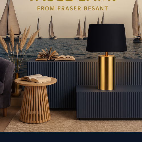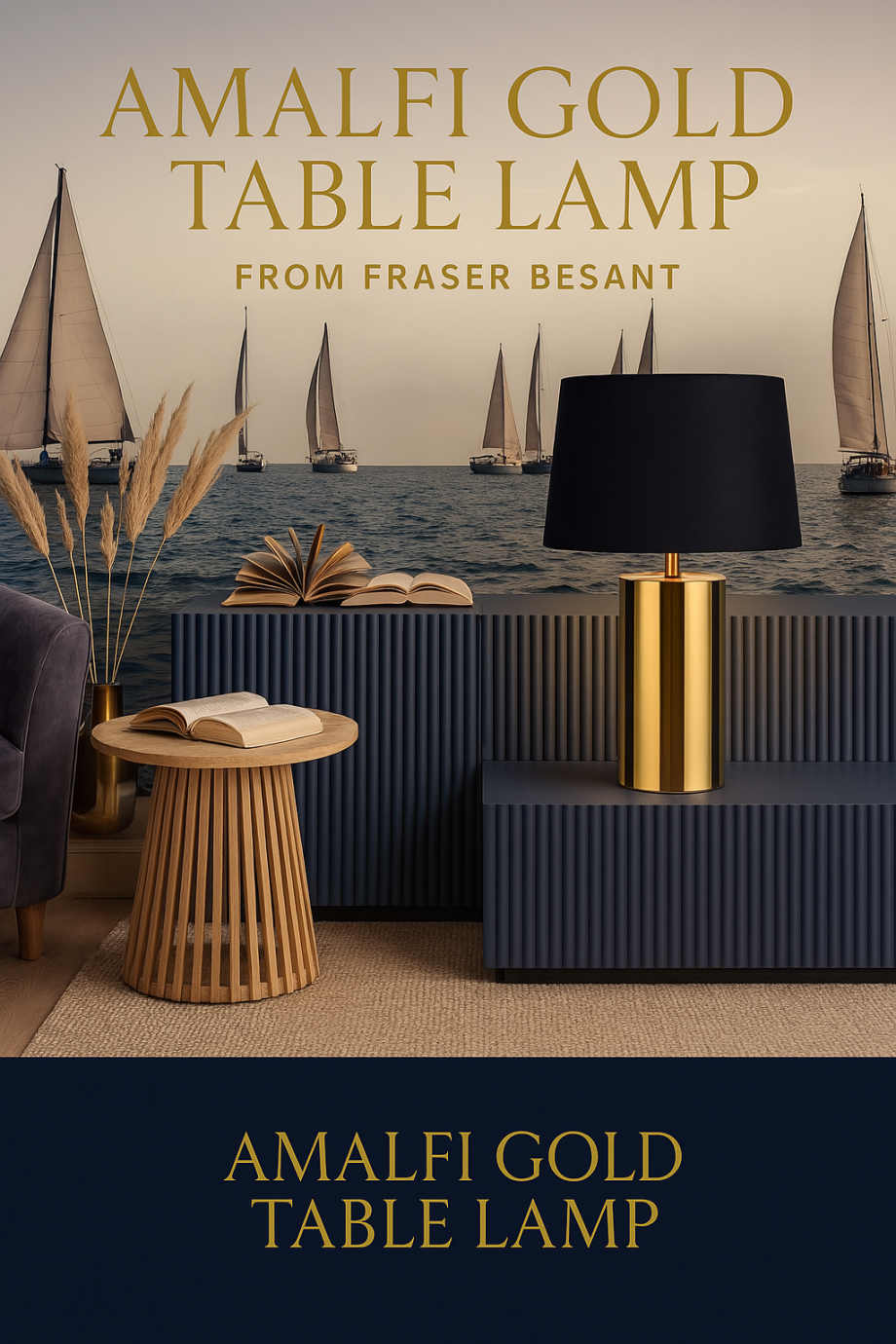 The Amalfi is a bold but luxurious gold effect lamp base, constructed of steel with black cotton shade. 1 x 40w GLS ELD Gold effect finished metalwork Black cotton tapered shade lined with brushed metallic inner In-line on/off switch with 1.8 metre black fabric flex Weight: 3.3 Kg