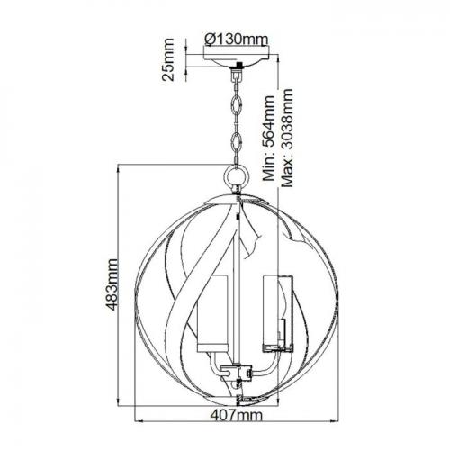 H: 483mm D: 407mm Min/Max Drop: 564mm - 3038mm