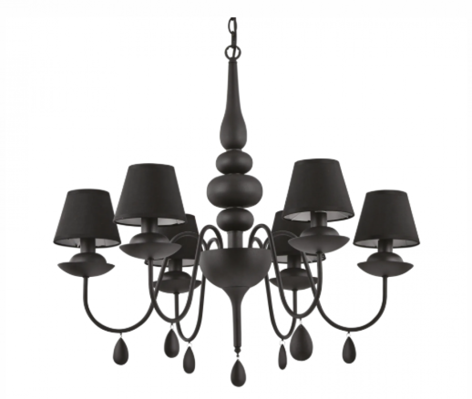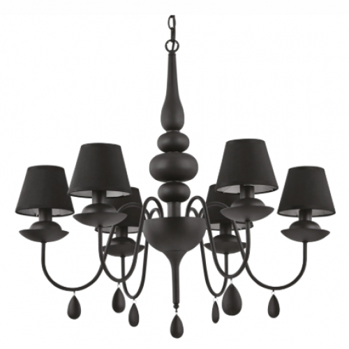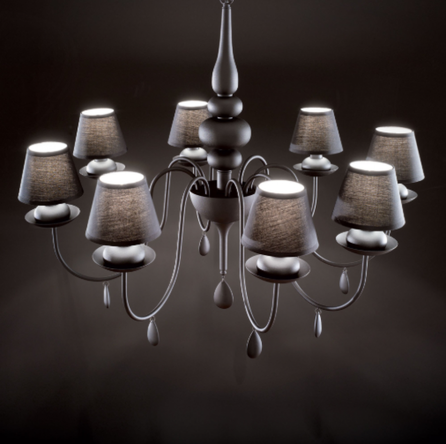 Metal frame finished with black varnish. PVC foil shades coated black fabric. Velvet chain cover.