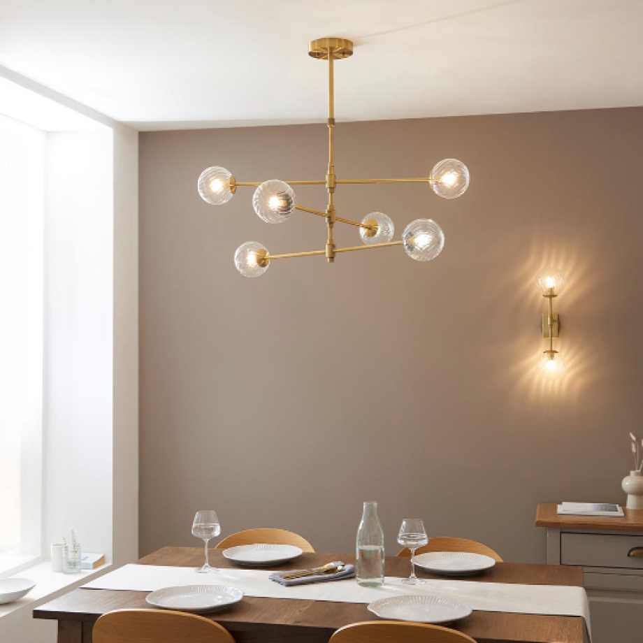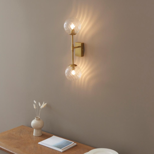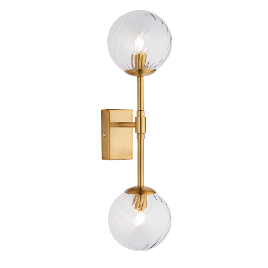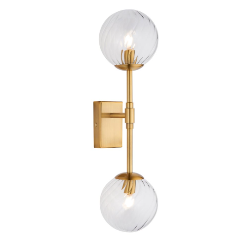 Create a striking contemporary look with this double light wall inspired by mid-century style brought up to date with clear twisted pattern glass to diffuse the light. Matching items also available.