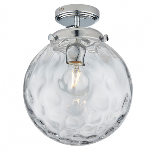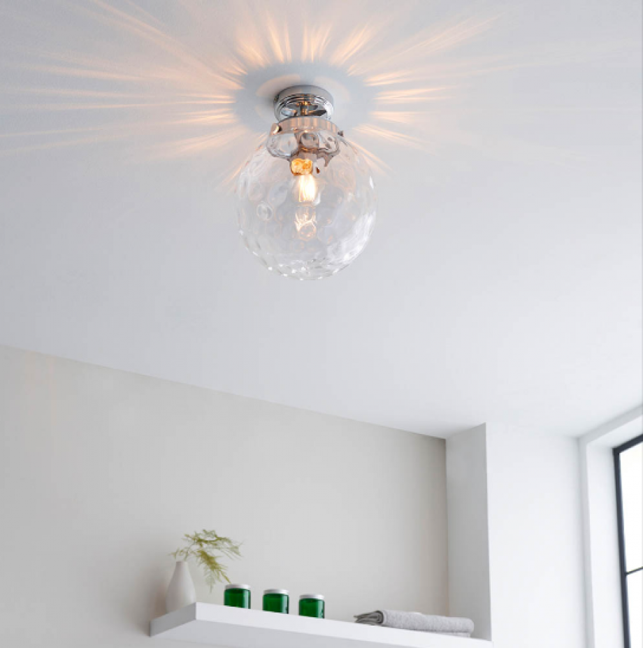 Timeless modern flush light with clear dimpled glass. Perfect design for low ceilings and suitable in any room as IP44 rated. Dimmable and ideal to use with E27 LED lamps.