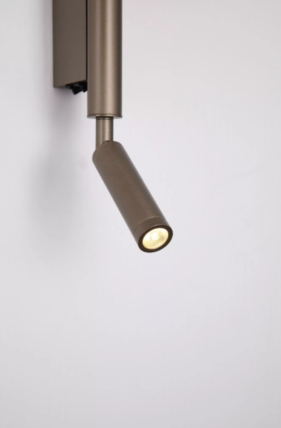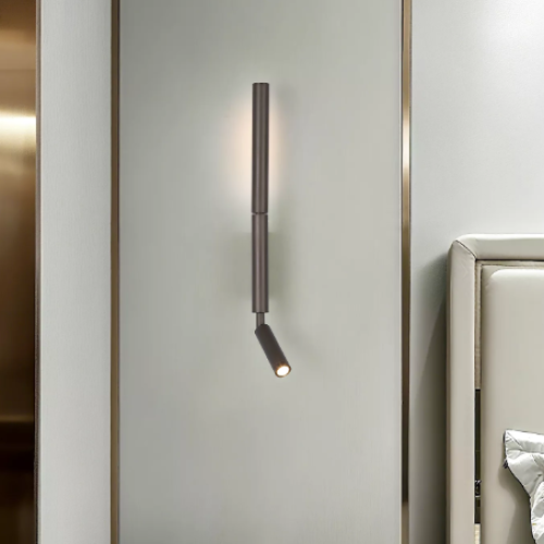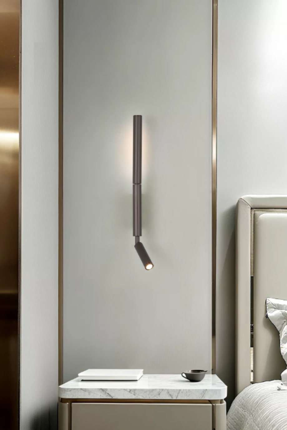 A wall light is an ideal way to introduce a warm, inviting atmosphere while adding a distinctive design element to your space. This contemporary design combines function and style with a reading arm, perfect for winding down in the evening. Crafted from aluminium and silicone, its slim test-tube-style frame in an elegant latter metal finish brings a modern edge to any interior. The integrated LED provides focused, glare-free illumination that's ideal for bedtime reading or ambient lighting, while the 77-degree projection ensures optimal light coverage without overpowering the room. Dimensions: H38.8cm x W2.6cm