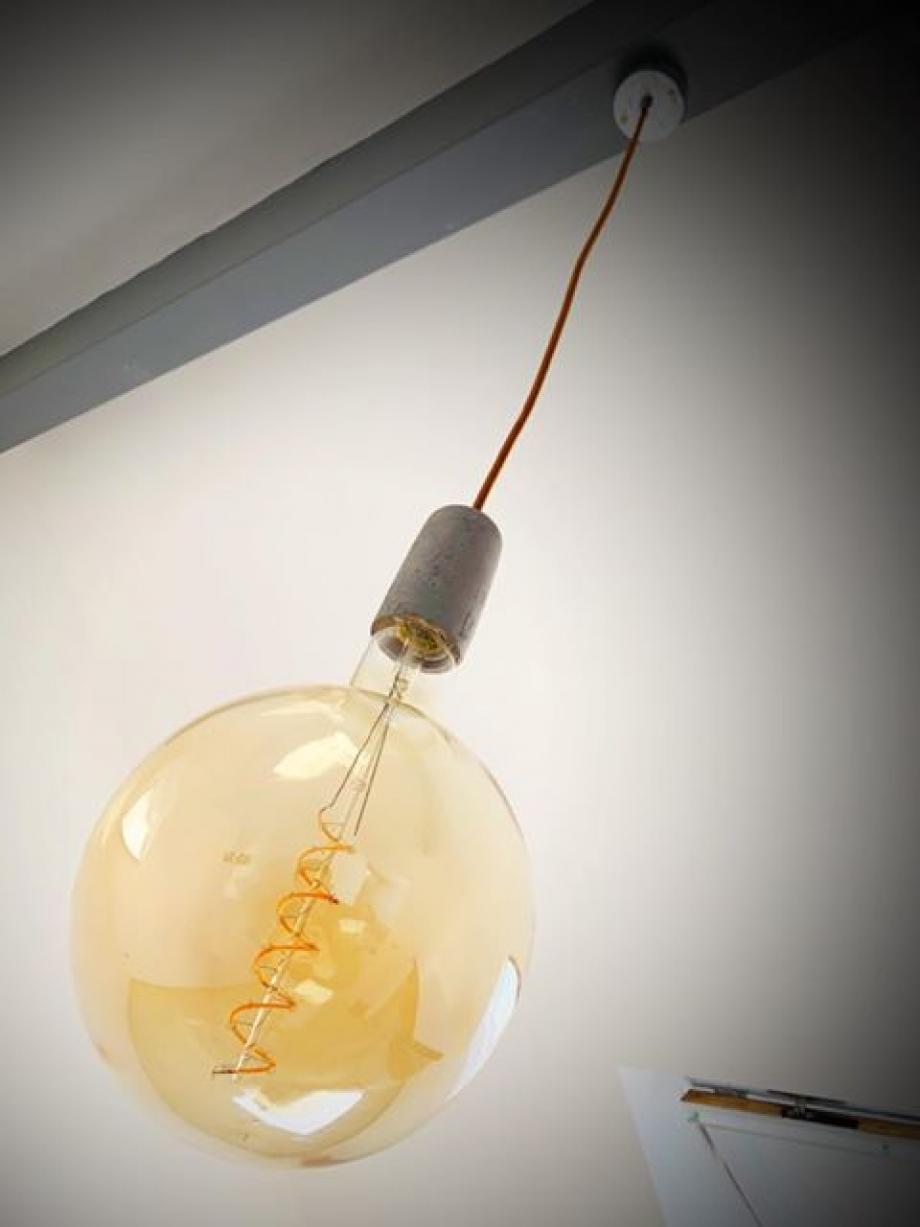 This concrete pendant is not supplied with a lamp, it is pictured with my giant 200mm LED globe lamp which is available online now.