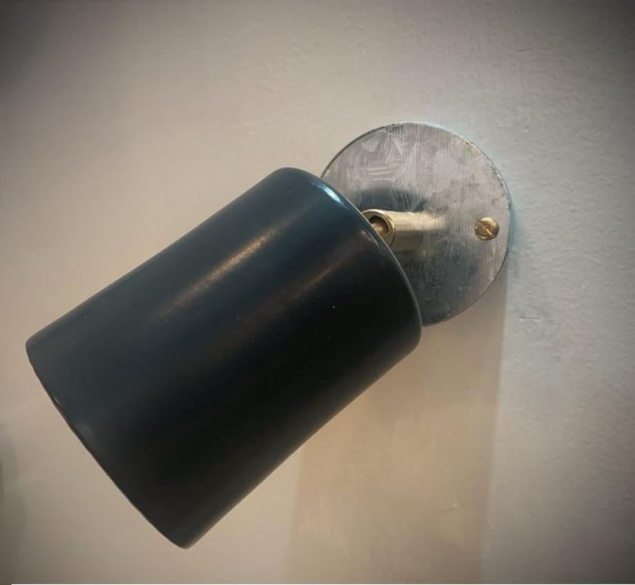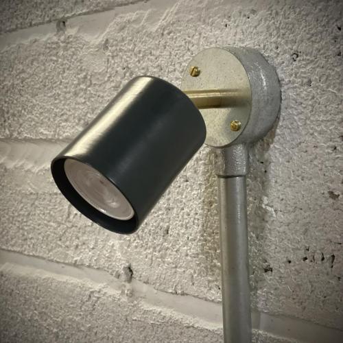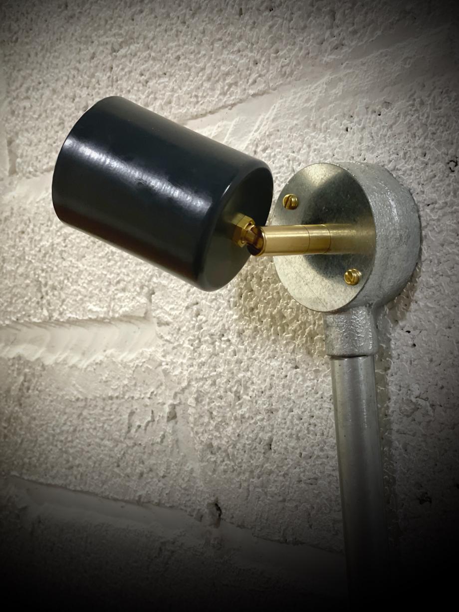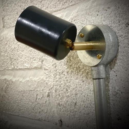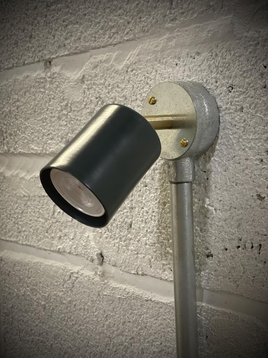 Anthracite grey GU10 adjustable conduit spotlight. This is a very urban design, a lovely matte anthracite GU10 adjustable lampholder sat on a metal conduit back box. Ideal for bedside lighting or wall wash effect lighting. You fit your own LED GU10 lamp so you can choose dimmable and warm or cool white. Each spotlight is handmade and carried my signature 10 year guarantee. I also supply these lights with a simple earth lead and wago branded connectors to make instal nice and quick. The lampholder sits inside the anthracite sleeve so when the LED is fitted it sits flush with the front of the light. The knuckle arm is fully adjustable in all directions so you can point the light exactly where its needed. These are made to order in my Bristol workshop, please allow 3-4 days for these to made and fully test it ahead of sending it out.