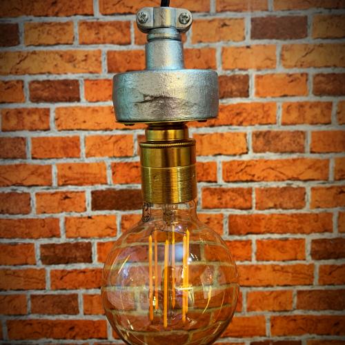 It comes as standard with 1 metre of jet black twisted fabric cable. We can fit other colours and longer lengths if desired. Please contact me to discuss this info@fraserbesantlighting.co.uk. The galvanised pendant set is also supplied with a super warm 2200k fully dimmable LED globe. This is 80mm wide and really sets off the pendant. We do have a range of other LED lamps available including squirrel cage LEDs, decorative golf balls and giant LED gloves that could be used.