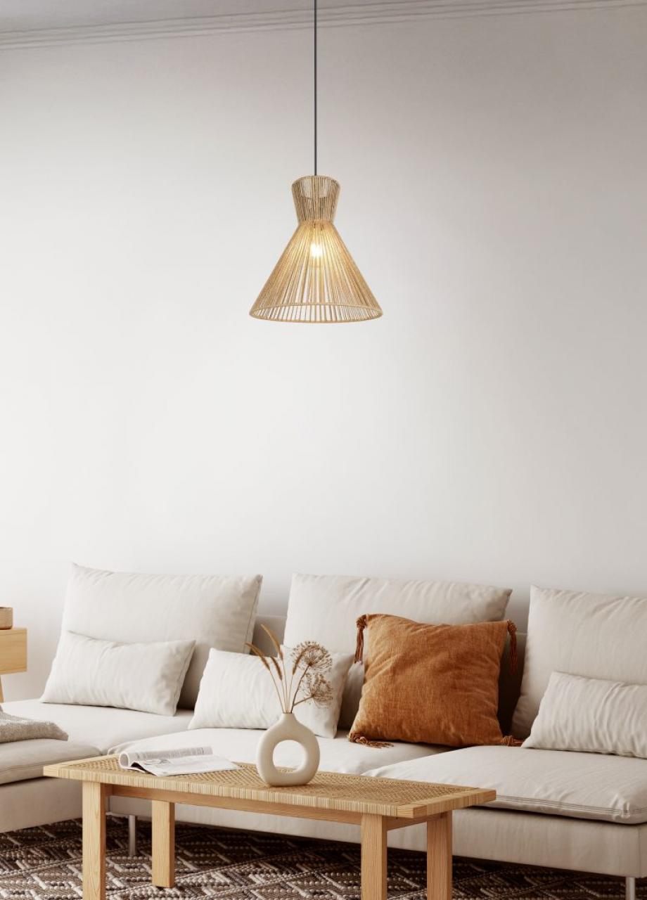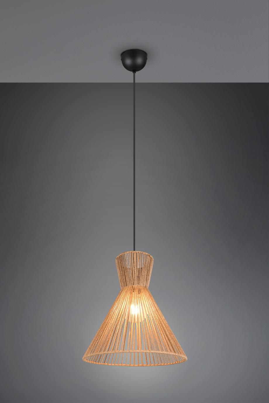 Cone-shaped woven natural fibre shade