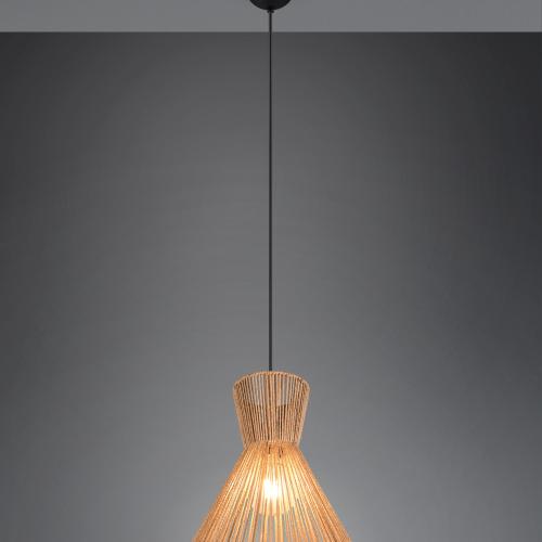 Cora Pendant Light – Matte Black & Natural Woven Cone Shade