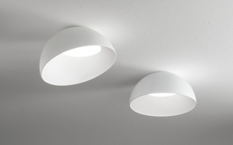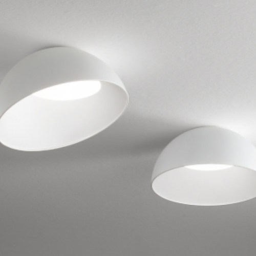 Matt white varnished metal frame. OPALE satin polycarbonate diffuser.