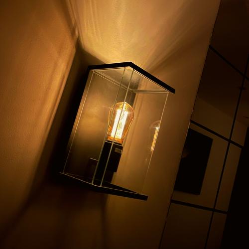Made from die cast aluminium and finished in modern dark grey, the shade is made from clear glass which not only showcases a decorative filament bulb, but protects it from the elements.