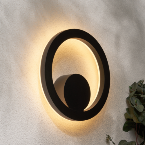 Eclipse Outdoor LED Circular Wall Light, Black