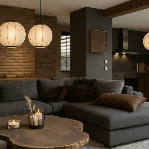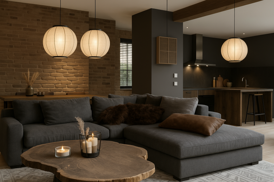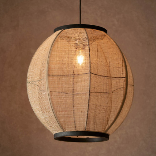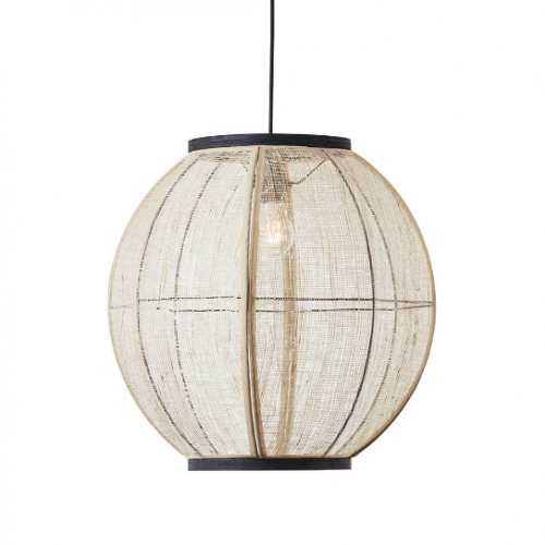 Empire Linen Large round pendant set. Take your interiors back to nature with this handmade wood and natural linen collection; a large pendant perfect for bringing an organic texture and warming ambience into your home. Other family items available.
