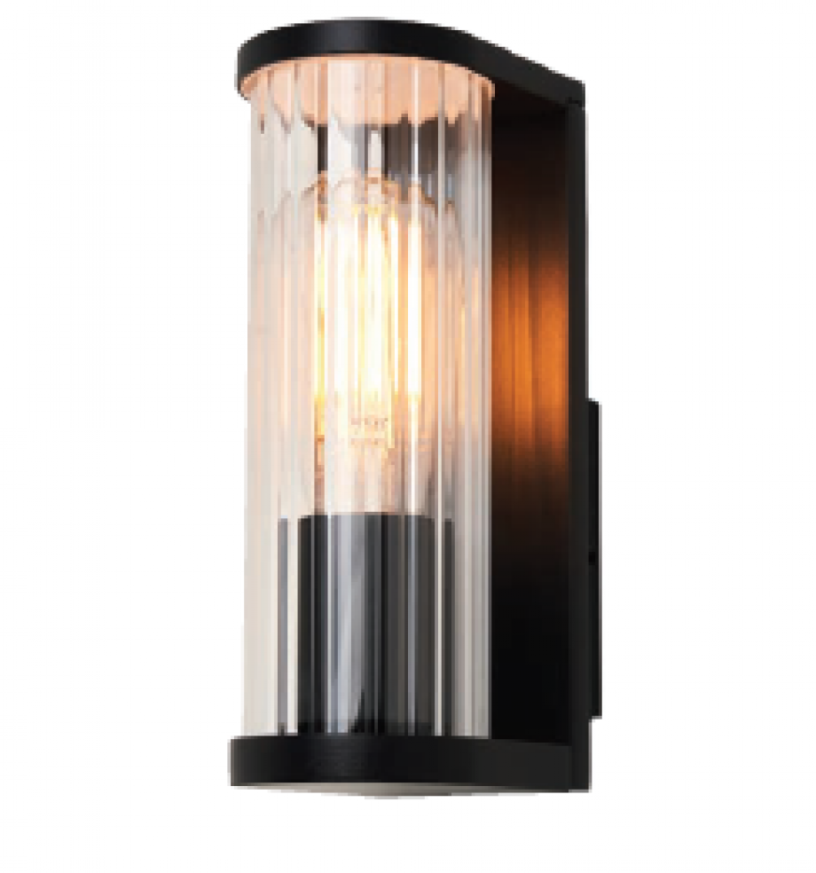 Forum Clevedon Ribbed Glass Wall Light - IP44 Black
