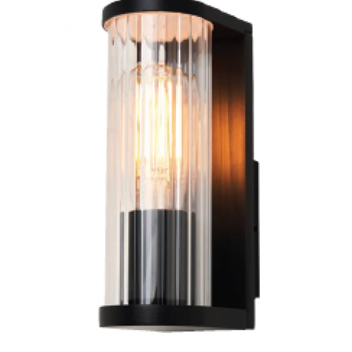 The Clevedon Outdoor wall light is a contemporary fitting with a sleek black frame and decorative ribbed glass design. This timeless look complements most properties. Fitted with a LED Squirrel cage lamp these fittings are sure to catch the eye whilst providing suitable lighting.