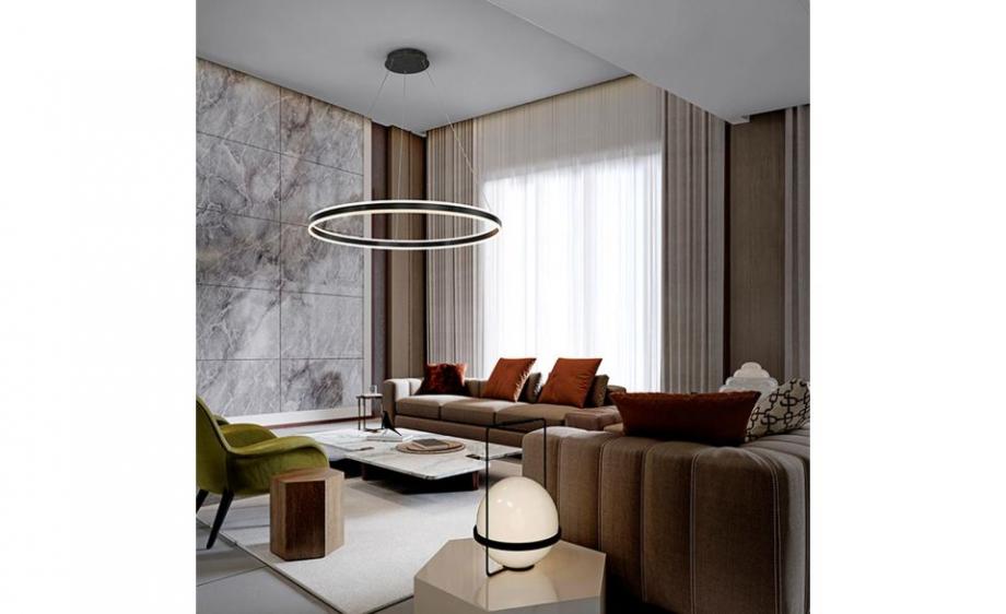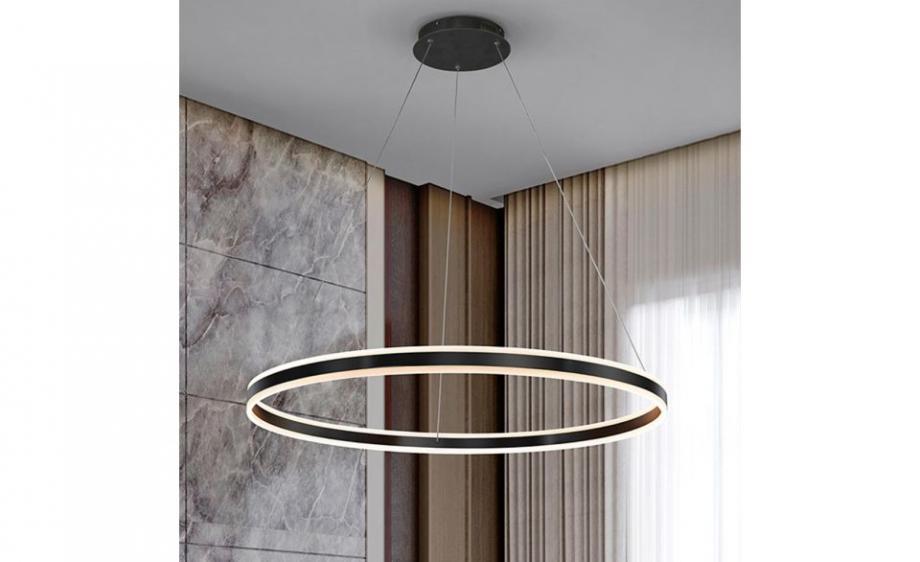 Discover the essence of modern illumination with the Schuller Geneva LED Circular Pendant Light. This masterpiece crafted by the renowned Spanish brand, Schuller, boasts a clean and contemporary design, an ideal accompaniment to any minimalist or modern decor. Made from high-grade metal and aluminium, the Schuller Helia presents a sturdy and durable design. The matte black finish adds an air of sophistication and a dash of industrial aesthetic, effortlessly blending into various interior themes while still maintaining its unique charm. The feature that sets the Helia apart is its beautifully designed ring, incorporated with an opal acrylic diffuser. This component, not only enhances its aesthetic appeal but also softens the LED light, creating a cosy, warm and inviting ambience in any room. The Helia LED pendant light comes with an adjustable height feature, providing you the flexibility to alter the light position to suit your preference or spatial requirements. Its adjustable nature makes it an ideal choice for rooms of various ceiling heights. Equipped with a 110W LED light with a colour temperature of 3000K, the Schuller Helia pendant light offers a perfect balance between energy efficiency and luminous output. Delivering a substantial 6600 lumens, this pendant light illuminates your space while providing a warm and welcoming glow.