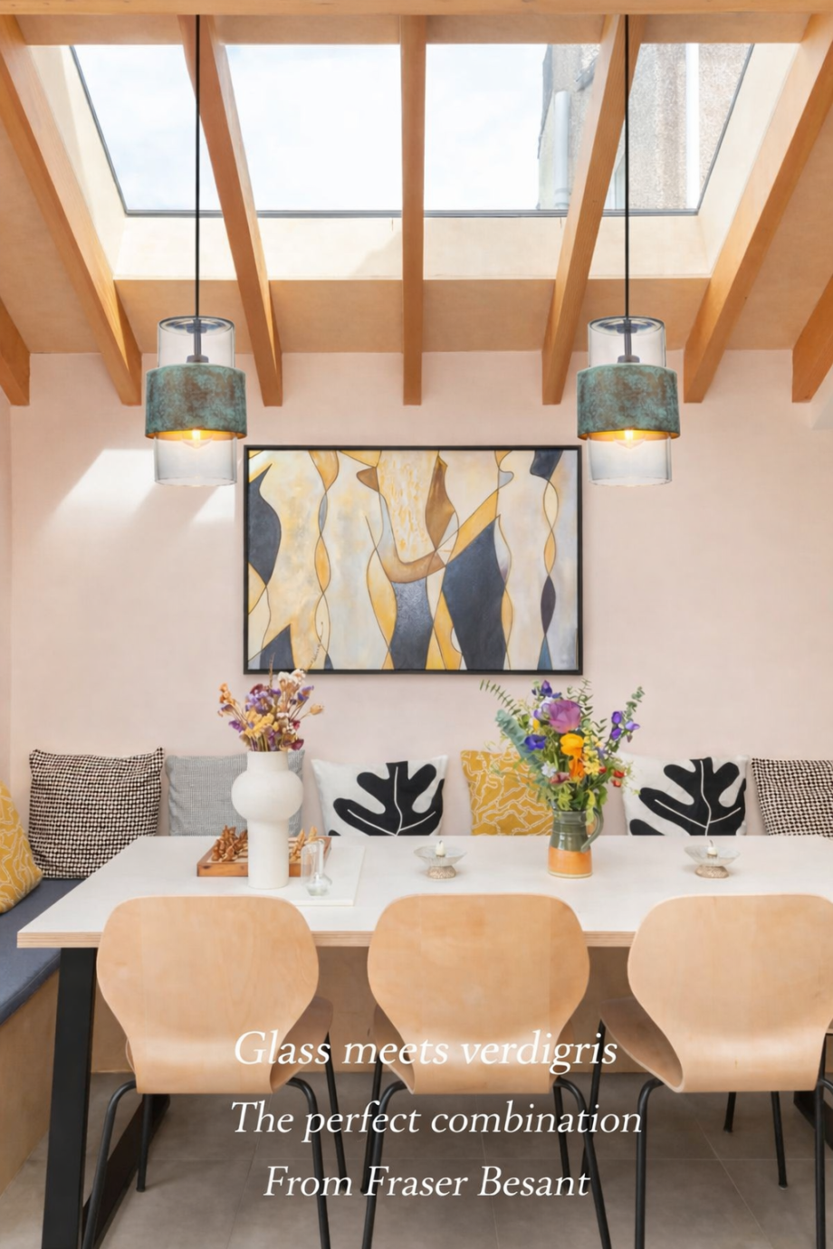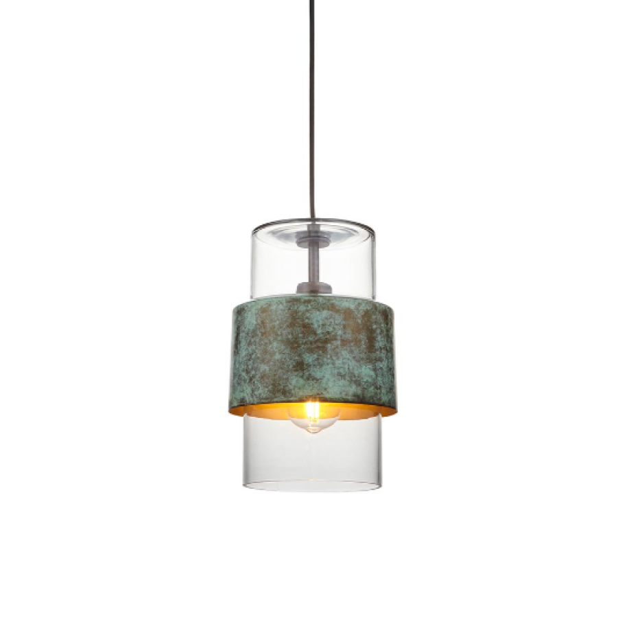 Glass and distressed copper modern pendant