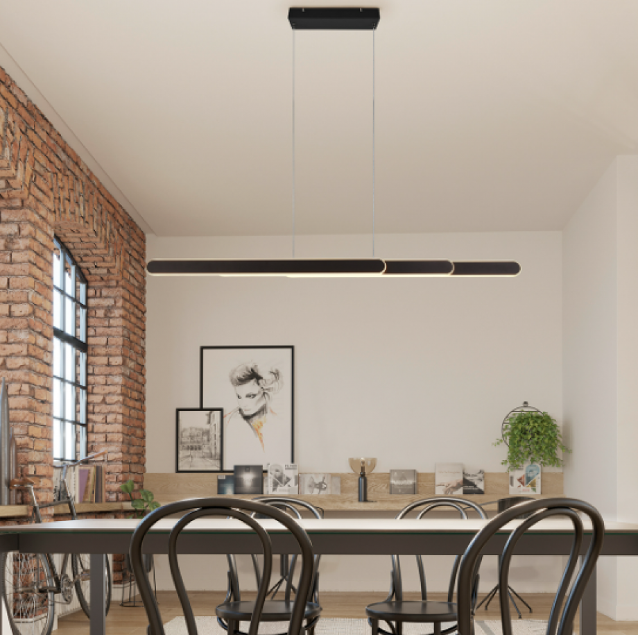 The 48W Pendant Light in a sleek matt black finish combines minimalist design with advanced functionality, making it a standout choice for modern interiors.