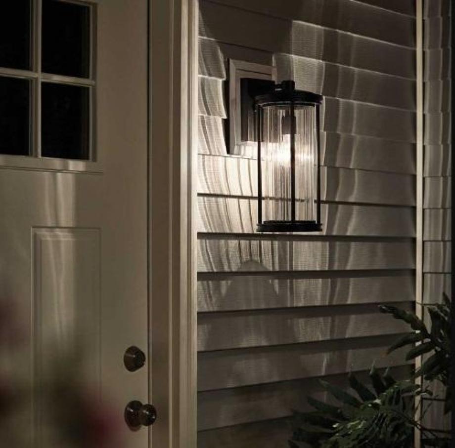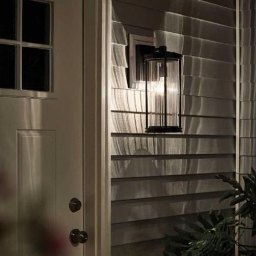 Holophane Glass club house Entranceway Light. This Medium outdoor wall light features a classic look with its Black finish and clear ribbed glass. Inspired by the early electric era style, it is a perfect addition in several aesthetic outdoor environments, including traditional and transitional.