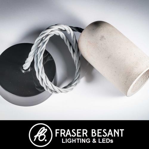 Industrial concrete pendant light set. Choose from 1,2,3 or 5 metre cable length. Please choose your desired pendant length from the drop menu. This set comes with Grey twisted 3 core fabric cable and a satin black plastic round ceiling rose. This all comes assembled and ready to fit. Longer lengths can be made to order please email or call us to discuss. We can also supply and wire a multi outlet ceiling rose with up to 7 outlets. All you need to do is choose a stylish lamp to set this feature light off. We recommend the use of our LED 120mm globe or the tubular LED filament squirrel cage lamp. These pendants are ideal for industrial interior designs. I have them on display now in my Bristol showroom. They are beautifully made and very good quality.