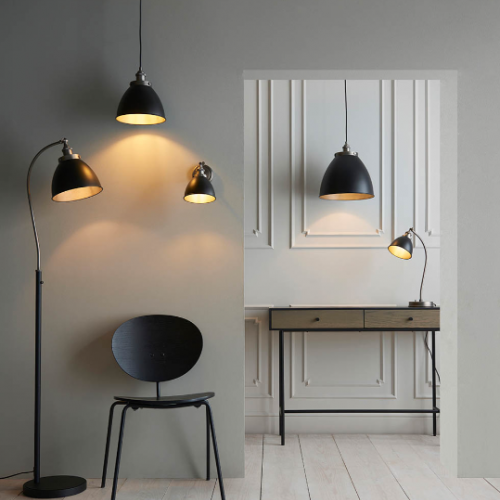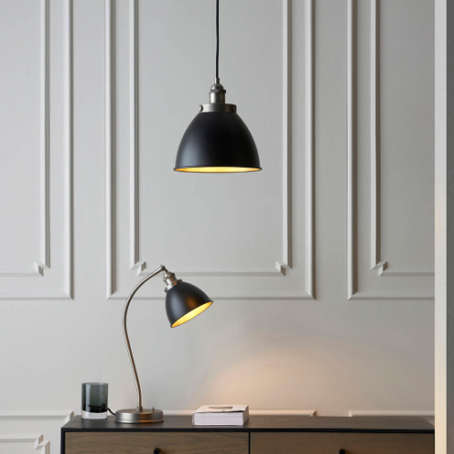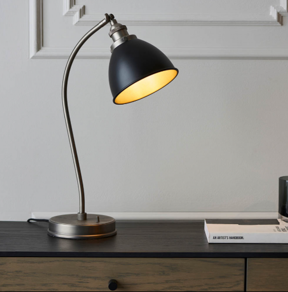 Industrial Pewter Table Lamp with Matt Black Shade