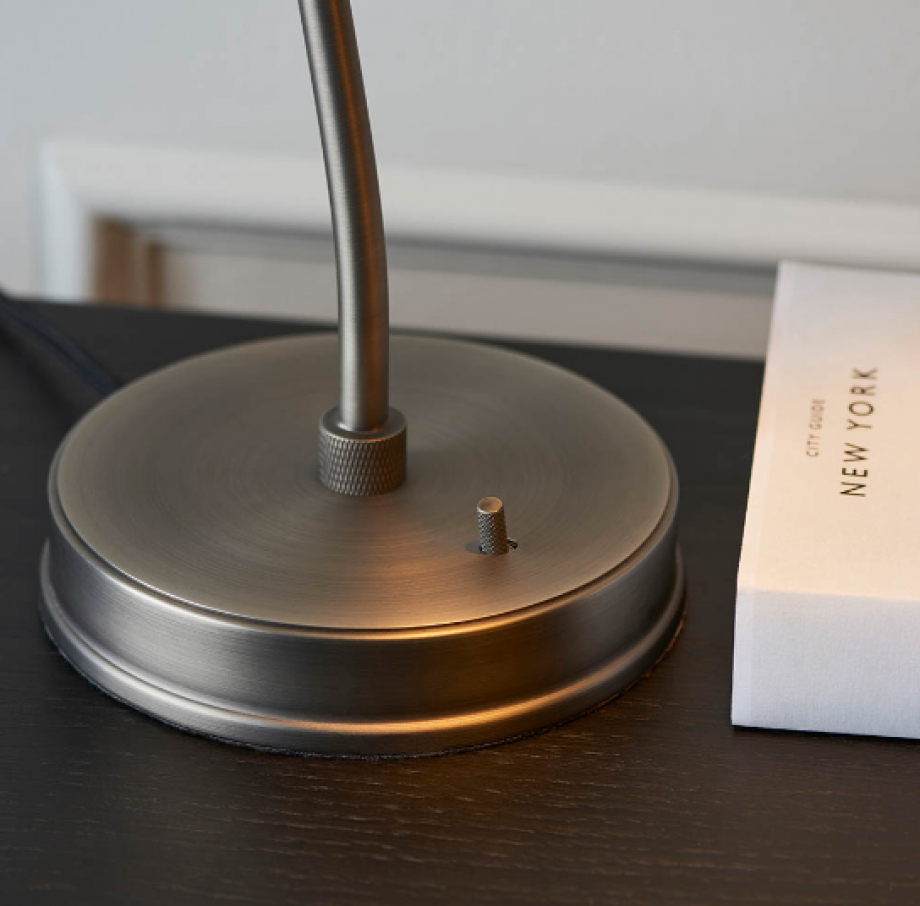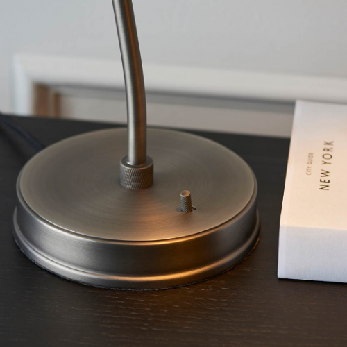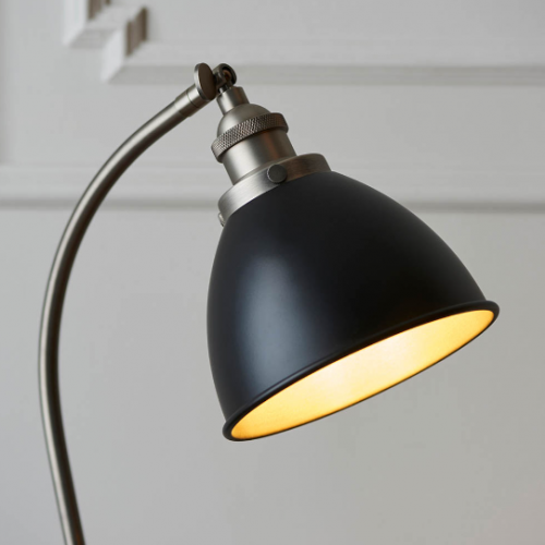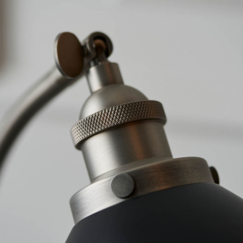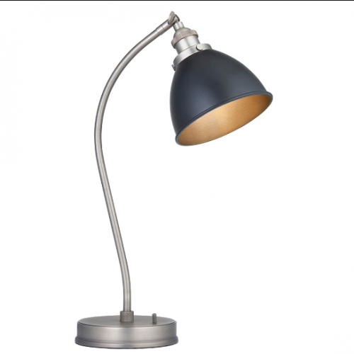 An authentic 'retro' style adjustable table light, finished in matt black paint with aged pewter plated details. Featuring an adjustable knuckle and accessible on/off switch, pair this table light with filament LED lamps for that perfect industrial style.