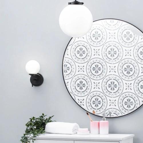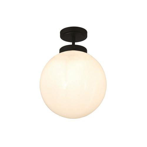 This Frosted Globe ceiling Light is an IP44, semi flush ceiling fitting with a matt black finish and opal glass shade.