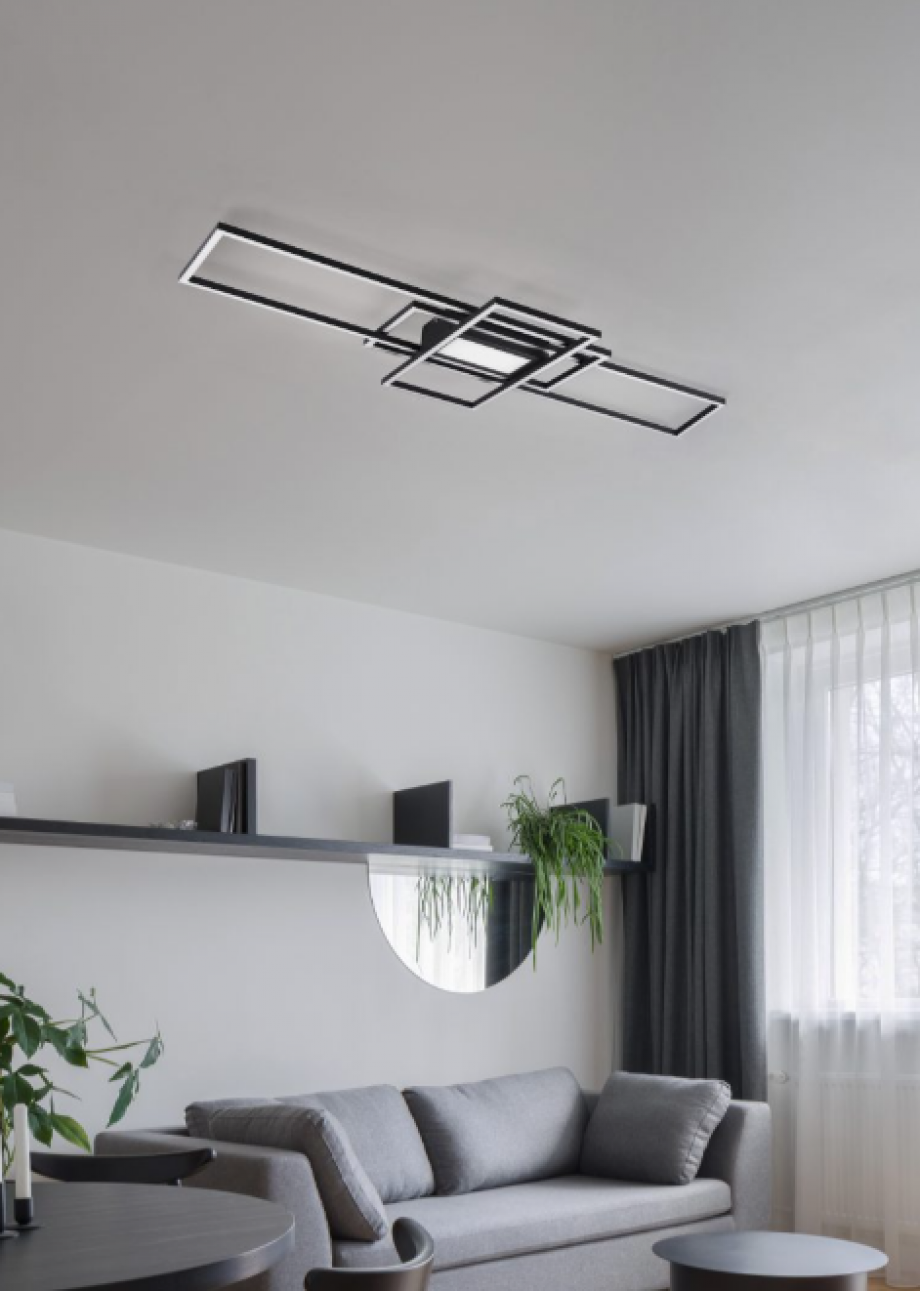 The IRVINE ceiling light creates atmospheric and soft lighting effects and is particularly impressive with its elegant design, which perfectly rounds off any modern furnishing style. The light also impresses with its practical additional functions. This is because the light has a night light function and the brightness can also be dimmed continuously so that it can be individually adjusted depending on the lighting conditions. Thanks to the integrated memory function, the last light scenario set with the remote control is set as soon as the light is switched off and on again using the wall switch. The modern ceiling light has a height of 6.5 cm and a width of 105 cm. Designed in anthracite, the light can be combined with many furnishing styles. In addition, the luminaires feature modern LED technology, which stands for a high quality of light. LED light sources are characterized by a long service life and low heat generation.