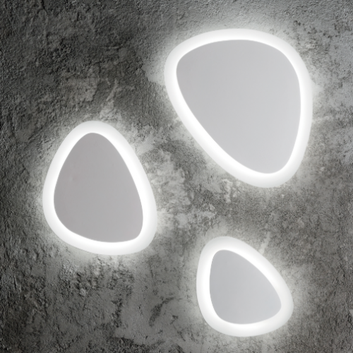 Powder coated metal base and body. Integrated LED light source with mirrored light emission.