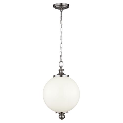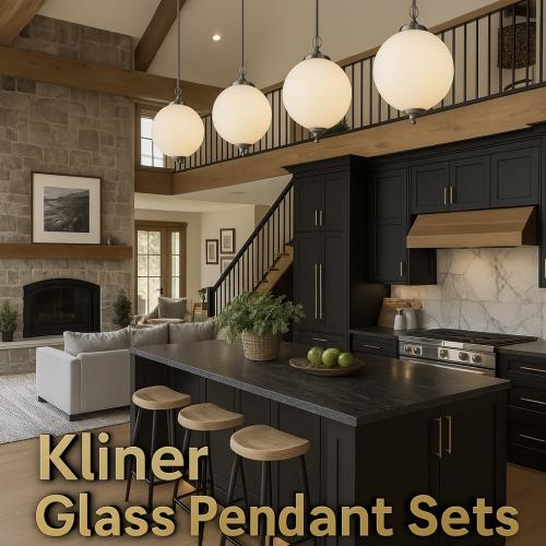 Kliner frosted glass ball elegant pendant set 300mm. A romantic blend of brushed steel and decadent frosted glass. A sophisticated and classic styling. Ideal for a more traditional and authentic interior, shown in the main image pride of place over a stunning shaker style kitchen in a barn. 1 x 60W E27