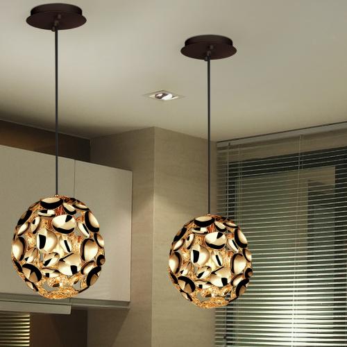 Meteor rose gold modern pendant light. A striking abstract modern pendant light ideal for use in a kitchen, over an island or dinning table. Each gold pendant comes with a 450lm E27 LED lamp included in the price. These Meteor lights come from Italy so please allow 10 days for us to order one in. The shade is 180mm wide and 220mm in height. The uneven surface of the gold arms means the lighting effect is interesting and unique. These are statement pendant lights, on or off they will get noticed.