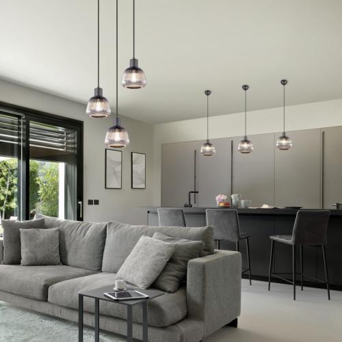 The Midnight pendant light epitomises retro chic and is an absolute must-have! Its trendy design makes it a highlight above the dining table or kitchen counter, while its cosy light and fascinating lighting effects create an inviting atmosphere. The matt black metal and chrome-plated glass give your living room a sophisticated touch. The use of LED light sources is recommended for energy-saving lighting. These are an ideal alternative to conventional halogen light sources and offer high light quality and energy savings of up to 80%. With LED light sources, you also benefit from a long service life and low heat generation while protecting the environment.