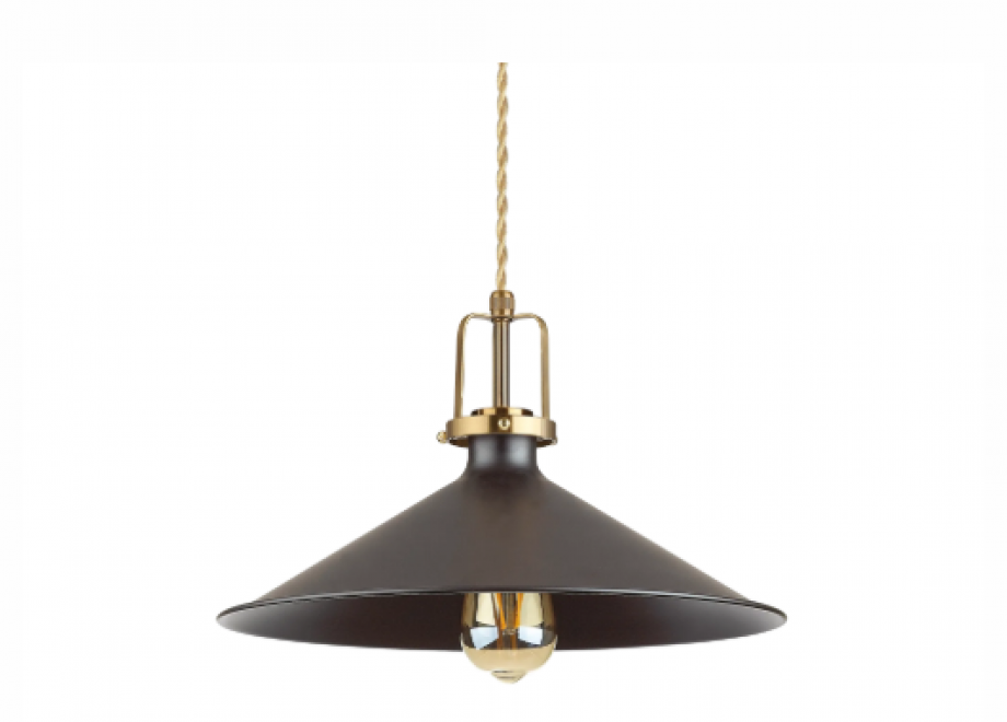 Metal frame with matt black varnished ceiling rose and diffusers. Details with satin gold finish. Braided electrical wire coated with fabric.