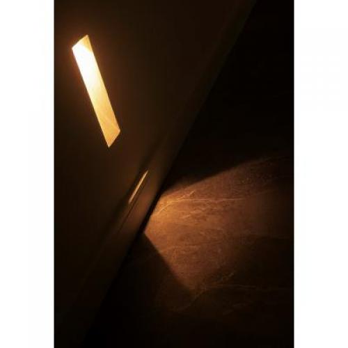 A trimless flush plaster in wall light, helps to create a crisp but discreet lighting feature. The design has a defined edge with a narrow opening, allowing a subtle light output. The white finish, although great on its own, can be painted using a good quality emulsion paint, enabling it to blend into the surrounding walls seamlessly. The fitting is great as a single fitting, but also creates a striking feature in a series. Natural gypsum plaster construction Dimmable subject to lamp
