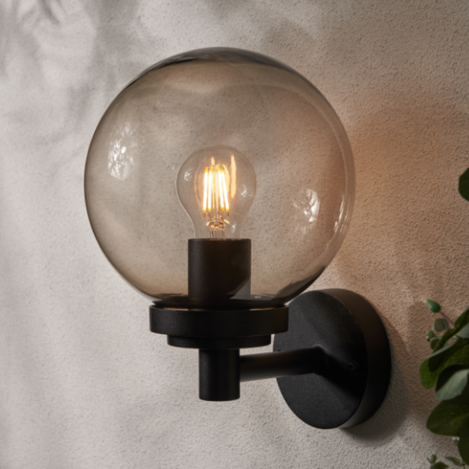 The Outdoor Globe Wall Light in Black offers the perfect blend of style and functionality for your outdoor spaces. Its smoke shade beautifully diffuses the light, creating a warm, inviting glow while maintaining a sophisticated and modern look. With an IP44 rating, this wall light is resistant to the elements, making it an excellent choice for porches, patios, or other exterior areas. Whether you’re looking to enhance your home’s entrance or add elegant lighting to your outdoor entertainment area, this fixture provides both practical illumination and a stylish design.