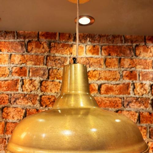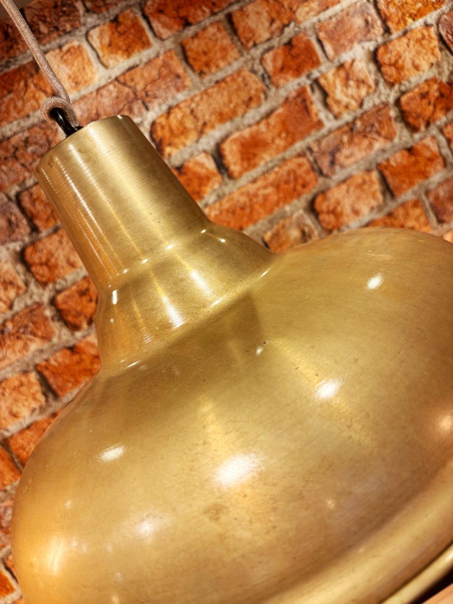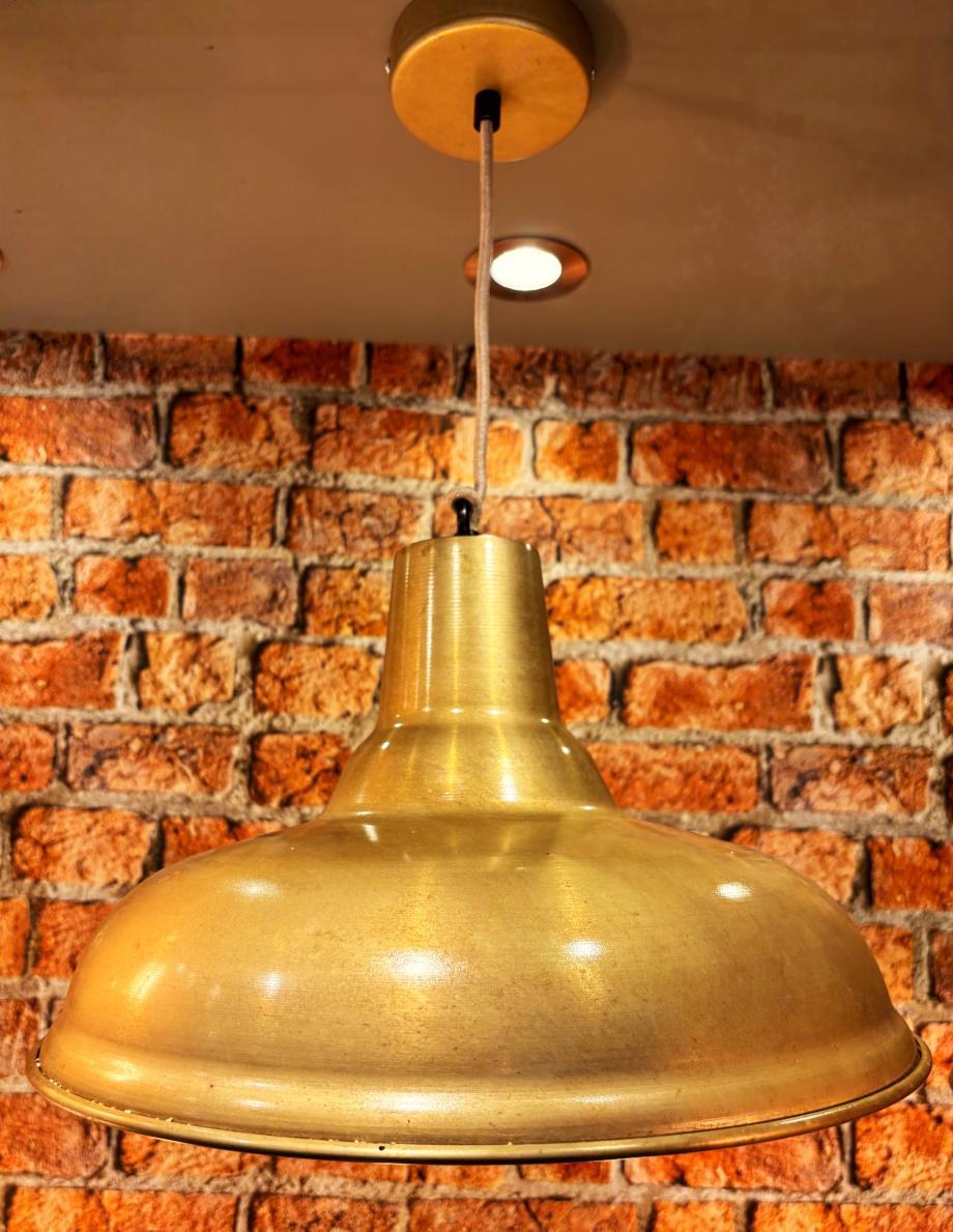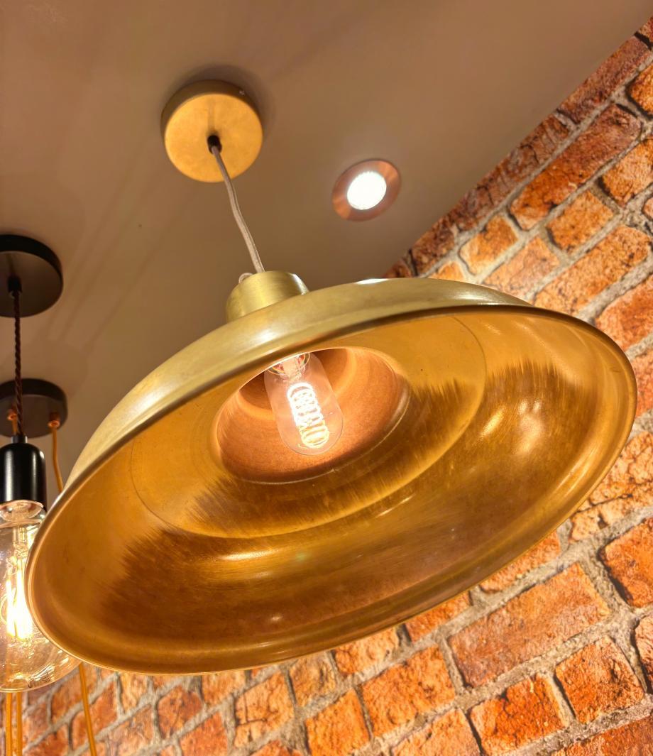 New Oxidised gold metal pendant light set, a hand spun vintage inspired metal shade. Finished in a natural oxidised gold finish, with a complimenting gold ceiling rose. A lovely warm and urban finish, charming and unique. Supplied with 1.5m of linen fabric cable, which is very on trend.