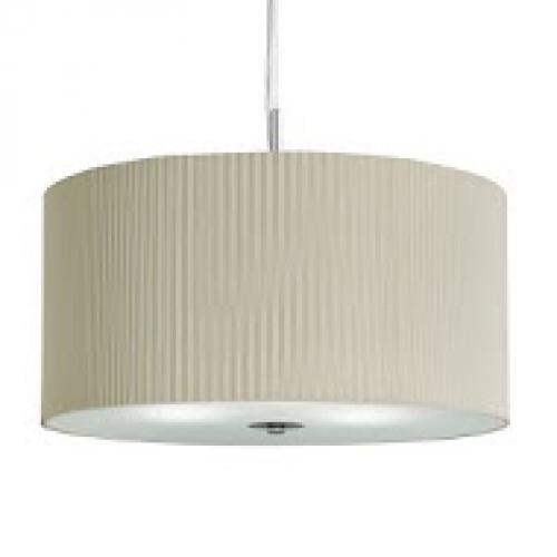 Pleated fabric cream lampshade with glass diffuser 3 x e27 400mm wide drum shaped shade. Height adjustable for lower ceiling. Stylish and charming design.