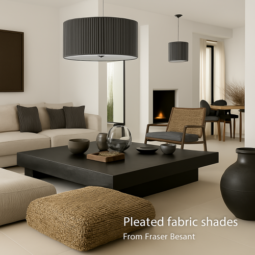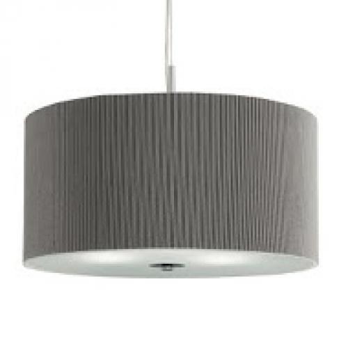 Pleated fabric grey lampshade with glass diffuser 3 x e27 600mm wide drum shaped shade