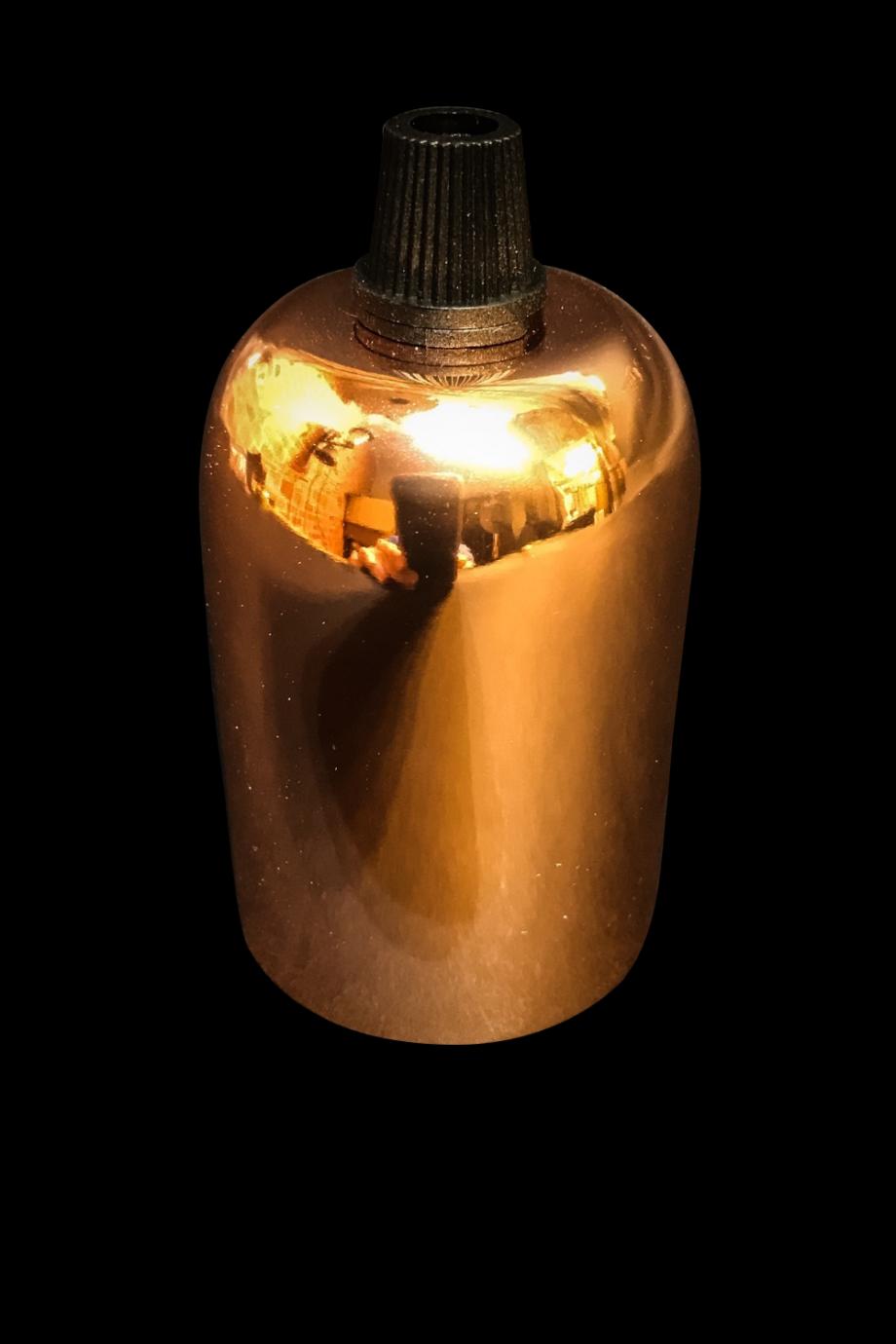 A beautiful hand finished polished english copper metal E27 lampholder. We also supply ceiling hooks and ceiling roses in the same effect. Each holder is supplied with a black cord grip and E27 internal lampholder. This is made in Bristol in our workshop.