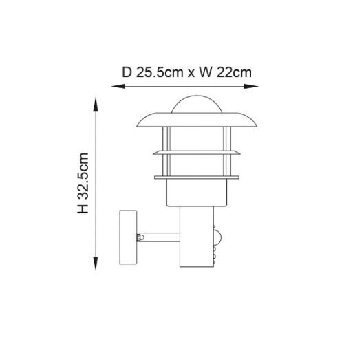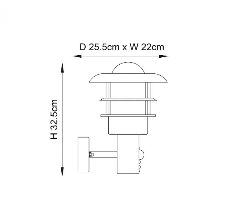 Classic louvered exterior wall light finished in polished stainless steel with clear glass shade. IP44 rated with adjustable PIR sensor to detect heat and automatically activate the light. The PIR can be altered to suite various detection angles and illumination times. Perfect for use with LED filament lamps.
