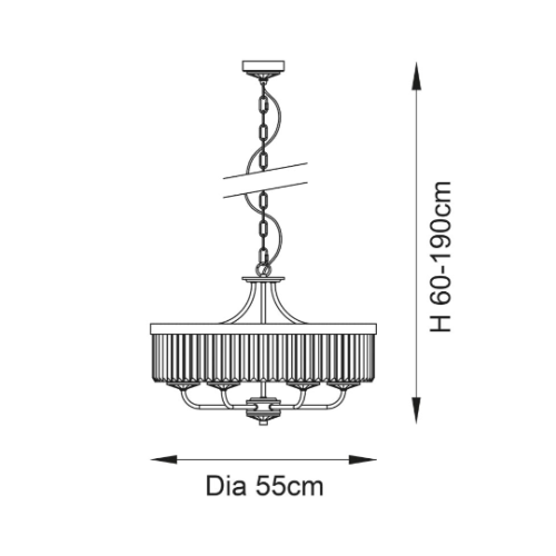 - Height adjustable 1.5 metre chain with clear cable