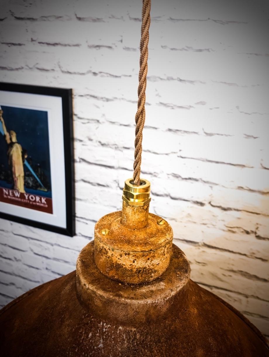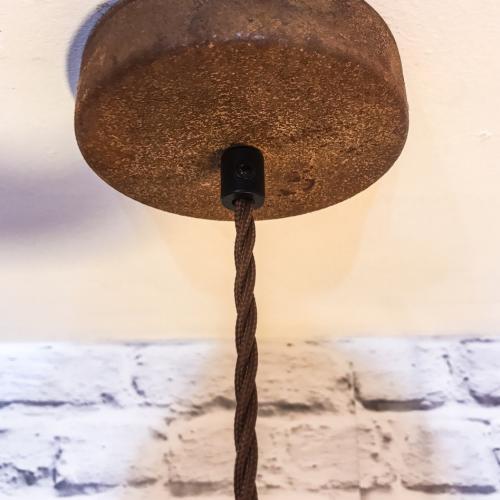 We make this pendant using 1.5mm thick steel so the weight and quality of this shade is second to none. The shade itself is made right here in the UK and the shape and design are unique to us. We supply each pendant set with 1.5 metres of brown twisted fabric cable and a rusted ceiling rose. Each rose is supplied with a metal fixing bracket, earth lug and wago connectors for an easy installation. It comes with a black metal cord grip. If you want to change the cable length or colour please contact me ahead of placing an order to discuss this, I am more than happy to help.
