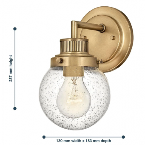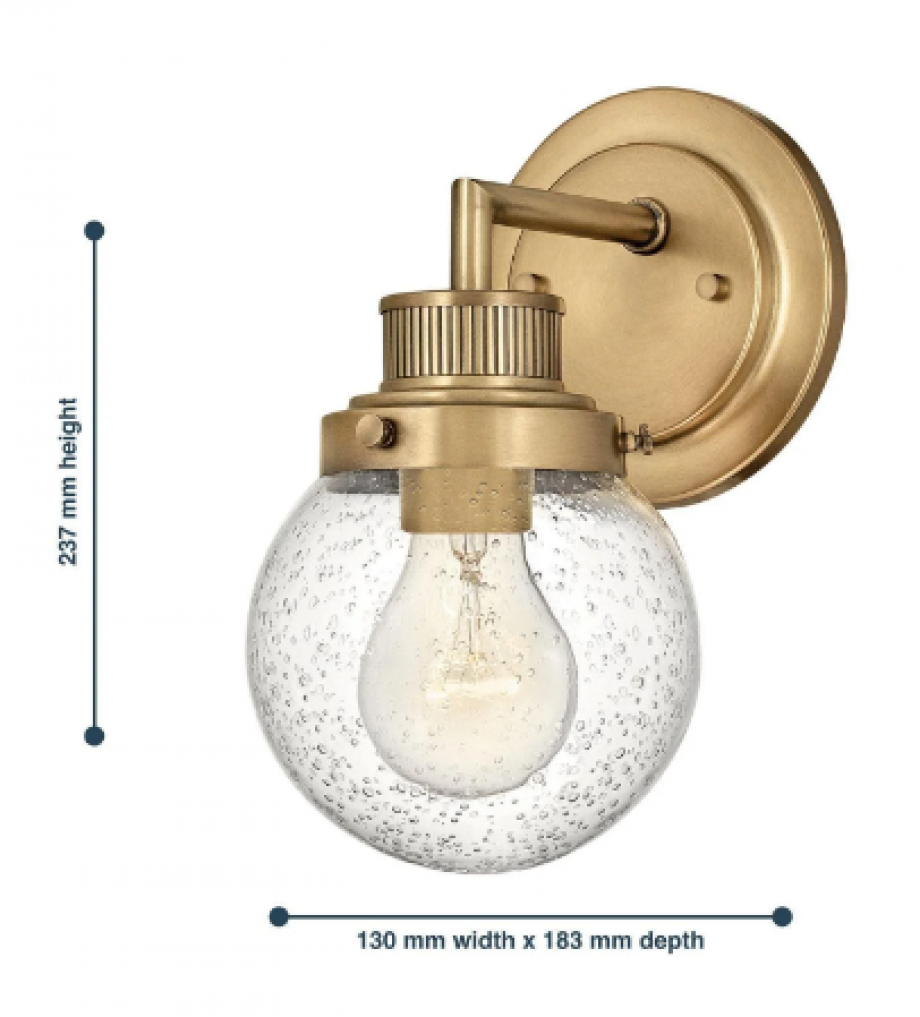 Poppy features clear seeded glass spheres that bubble out of the refined, ribbed Chrome or Heritage Brass framework to create a simple, yet sophisticated silhouette. An elegant, stepped backplate and crisp crossbar anchor this airy design. Poppy showcases mid-century style with a spectacular spin and boasts an IP44 rating, so a great fit for bathroom use. Suitable for bathrooms, hallways, kitchens, porches, study & utility rooms. Recommended for bathroom zone 2 & 3. 23.7 cm height x 13 cm width x 18.3 cm depth. IP44 rated. Suitable for bathrooms. This product is suitable for use with LED bulbs and when paired with a dimmable bulb can be dimmed. This product is compatible with most domestic smart light bulbs. Always check bulb length against product dimensions to confirm suitability. 60W Max E27 ES (required). Class I - Earthed for your safety.