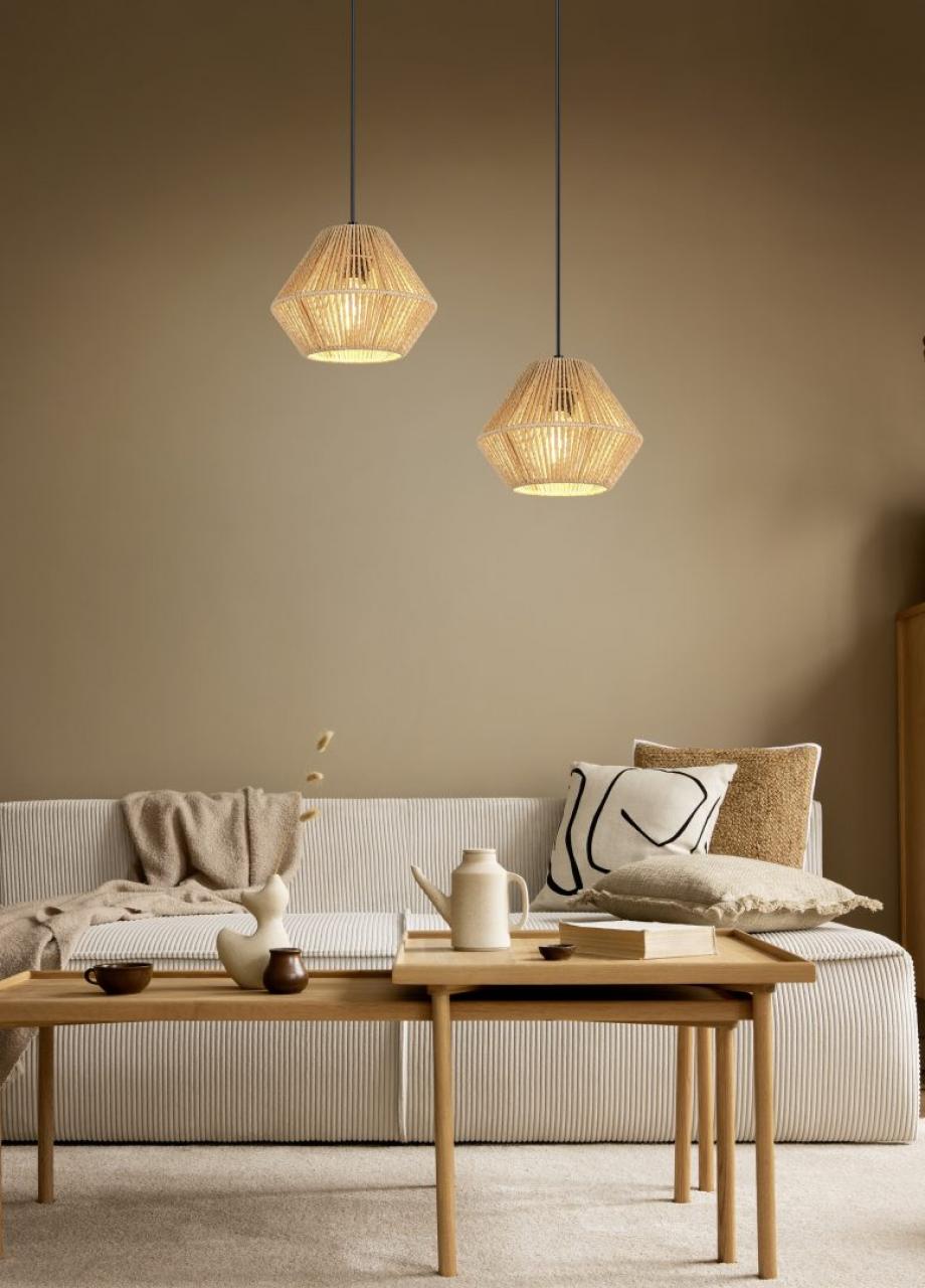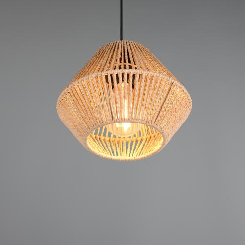 The Sable Pendant Light brings a perfect balance of natural warmth and modern design to your space. Featuring a textured brown woven paper-yarn shade paired with a sleek matte black ceiling fitting, this pendant softly diffuses light to create a cosy, inviting atmosphere.